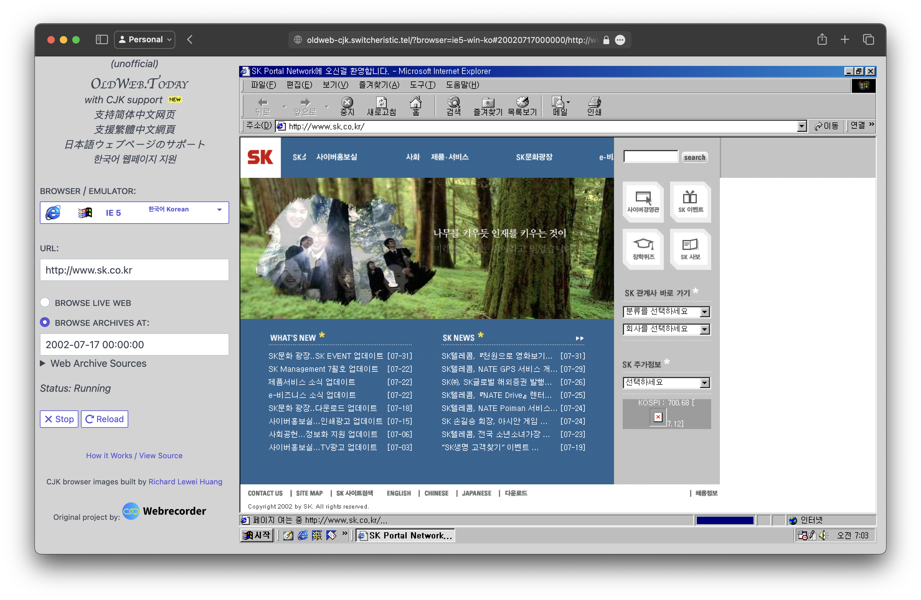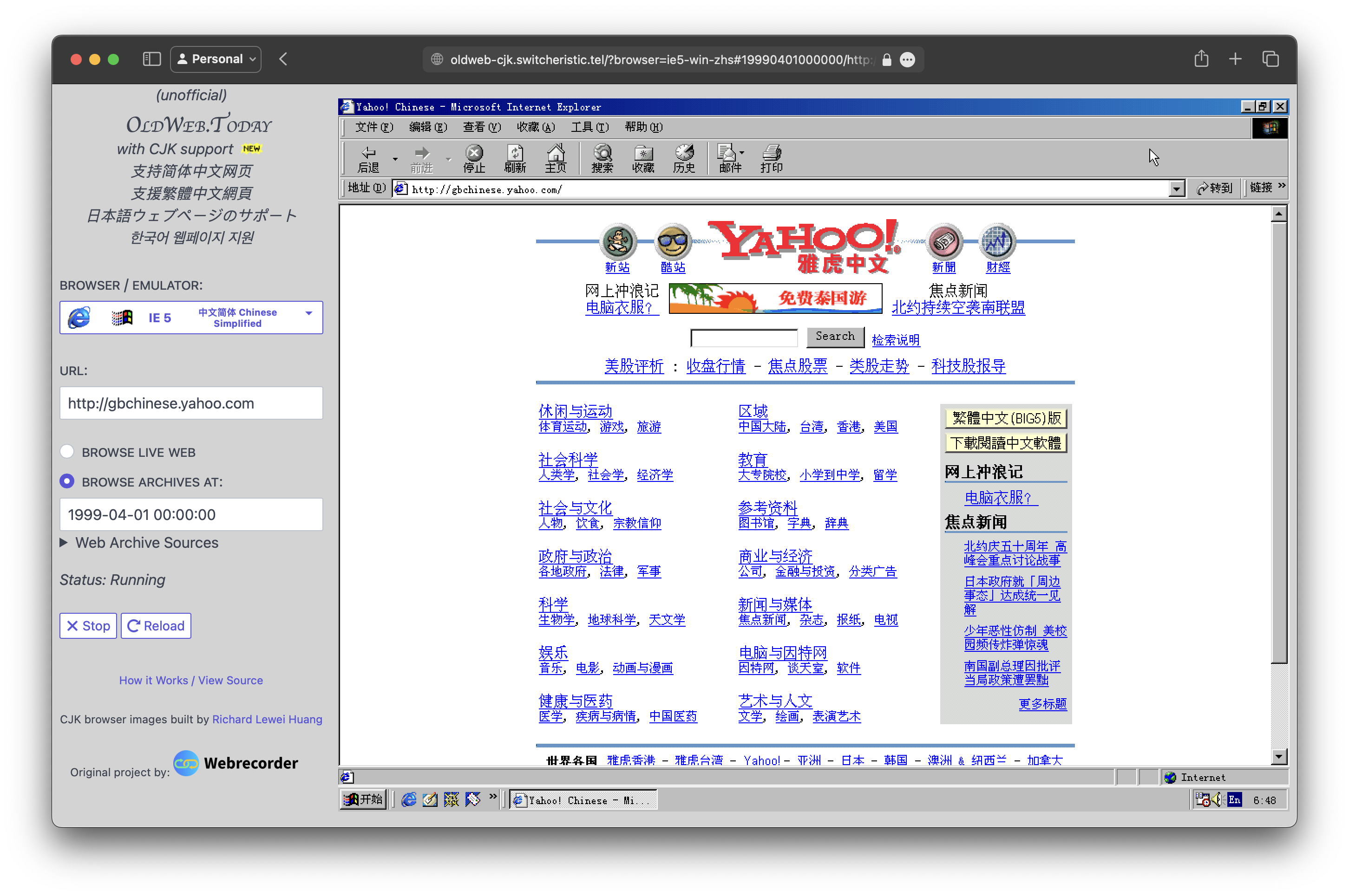 Oldweb-cjk is an in-browser browser emulator that allows users to visit archived web pages on the Wayback Machine in Chinese, Japanese, and Korean (CJK) languages in a period-appropriate web browser, emulated completely within the user's browser.
